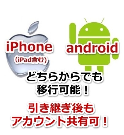 現在プレイ中のセーブデータはiphone/androidどちらからでも移行が可能、